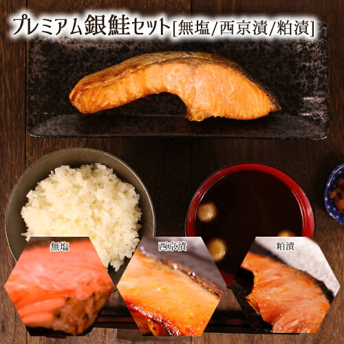 プレミアム銀鮭セット[無塩(約100g×2枚入)×1P/西京漬(約100g×2枚入)×2P/粕漬(約100g×2枚入)×1P]